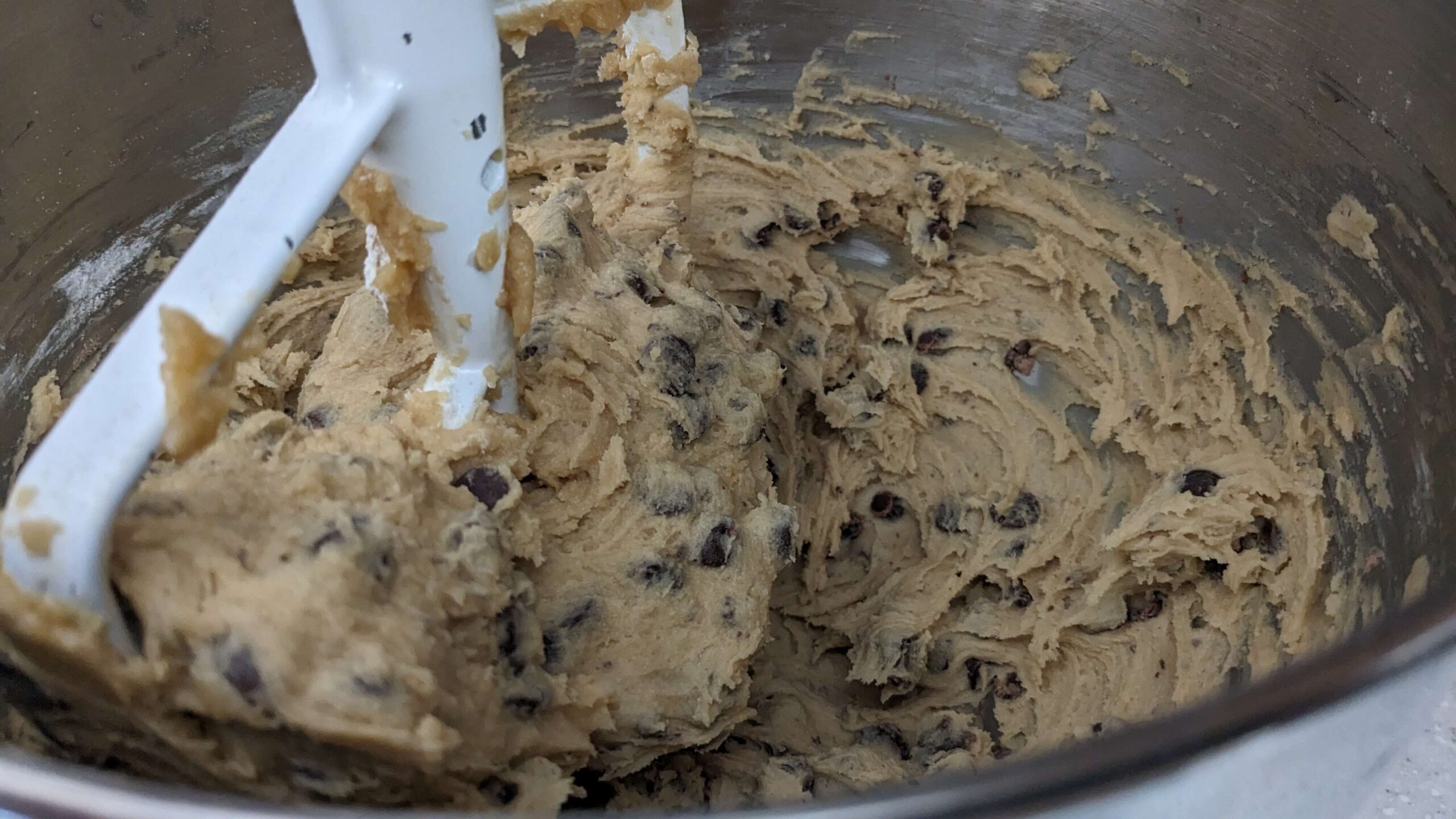 - Add the chocolate chips and mix until evenly blended in.