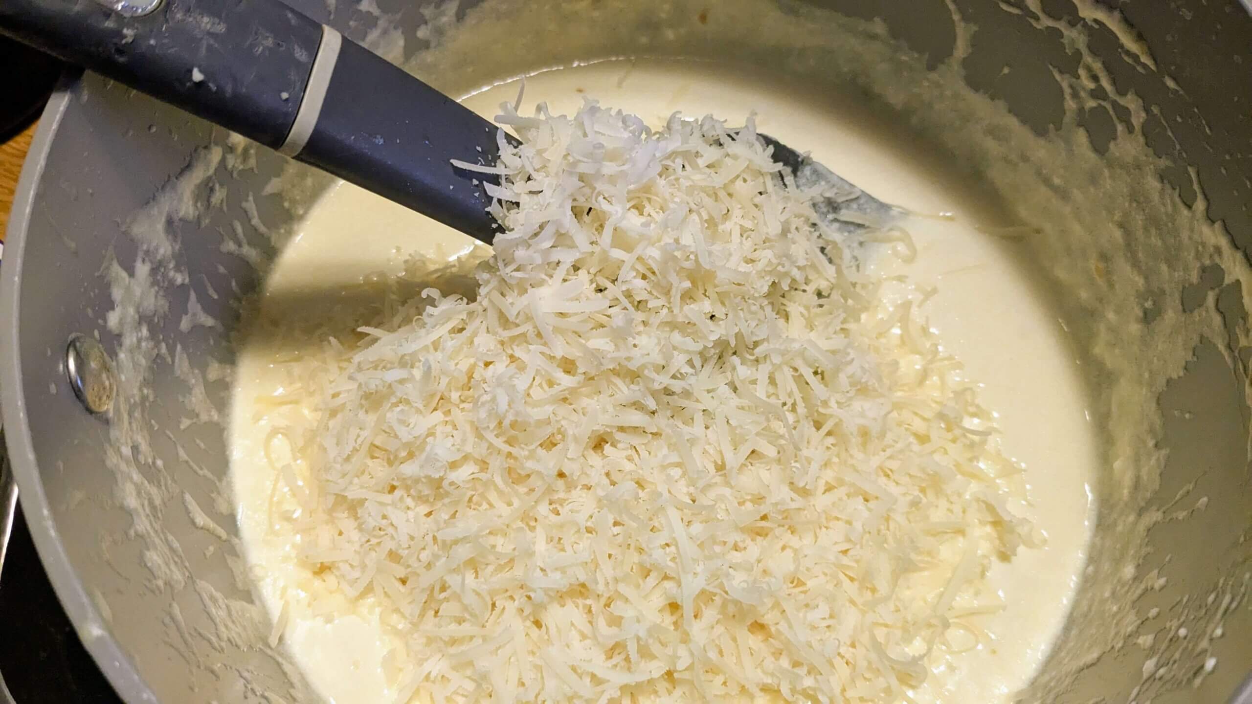 I used fresh parmesan. I grated out the amount that was needed and put the rest in the refrigerator. You can try to use the “shaky cheese” parmesan that you get in the pasta aisle, but the cheese may not melt as well. This would cause your sauce to be less smooth.