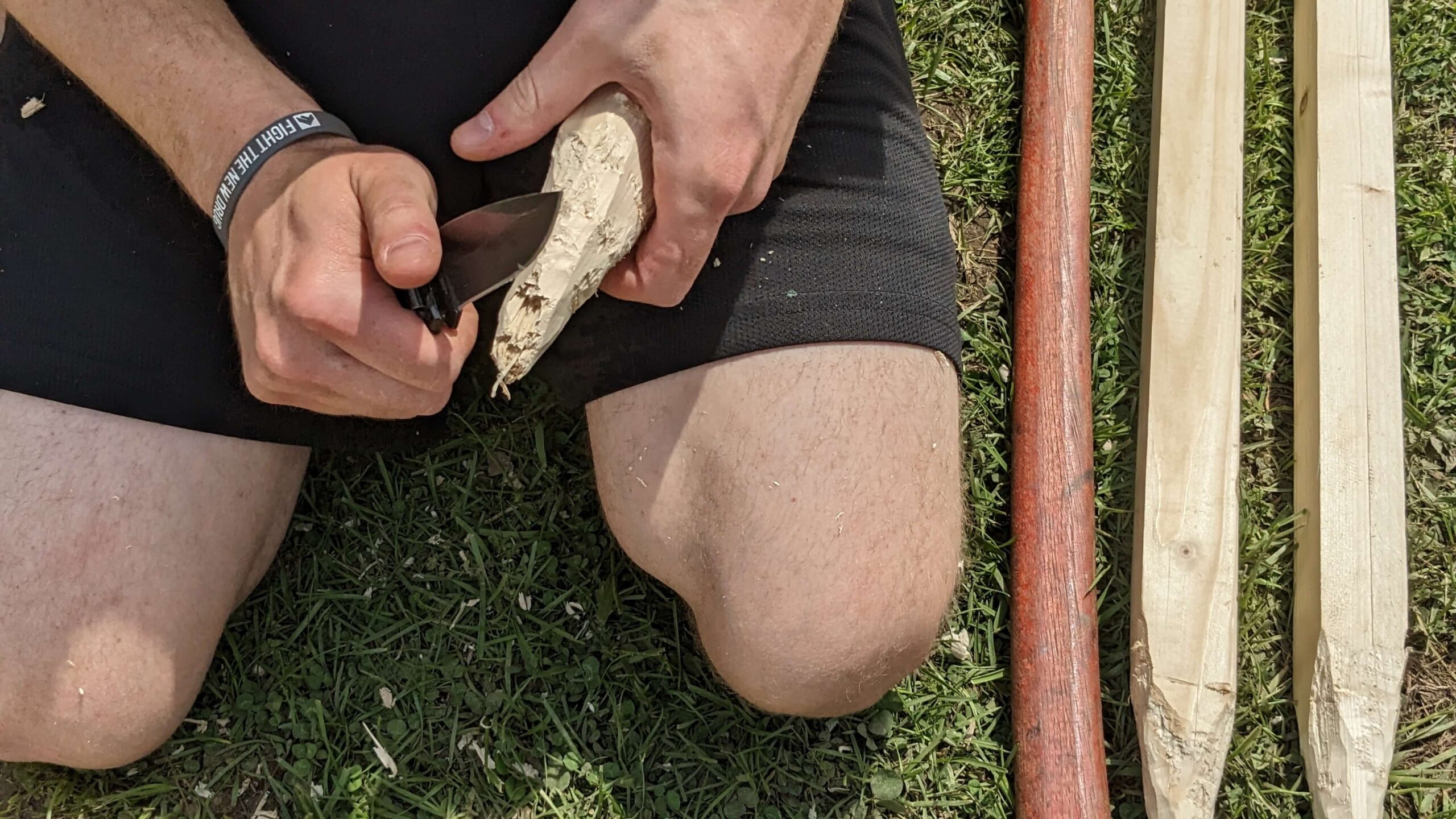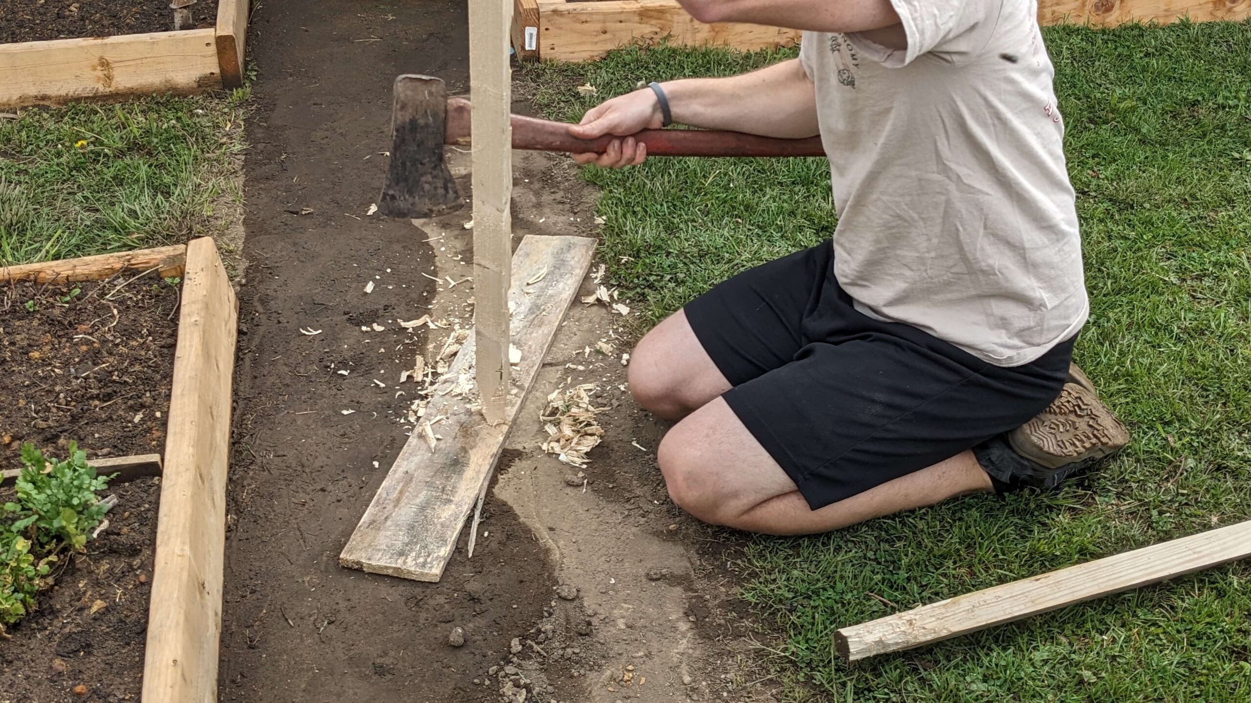 - Axe and knife (something to sharpen the end of the wood boards)