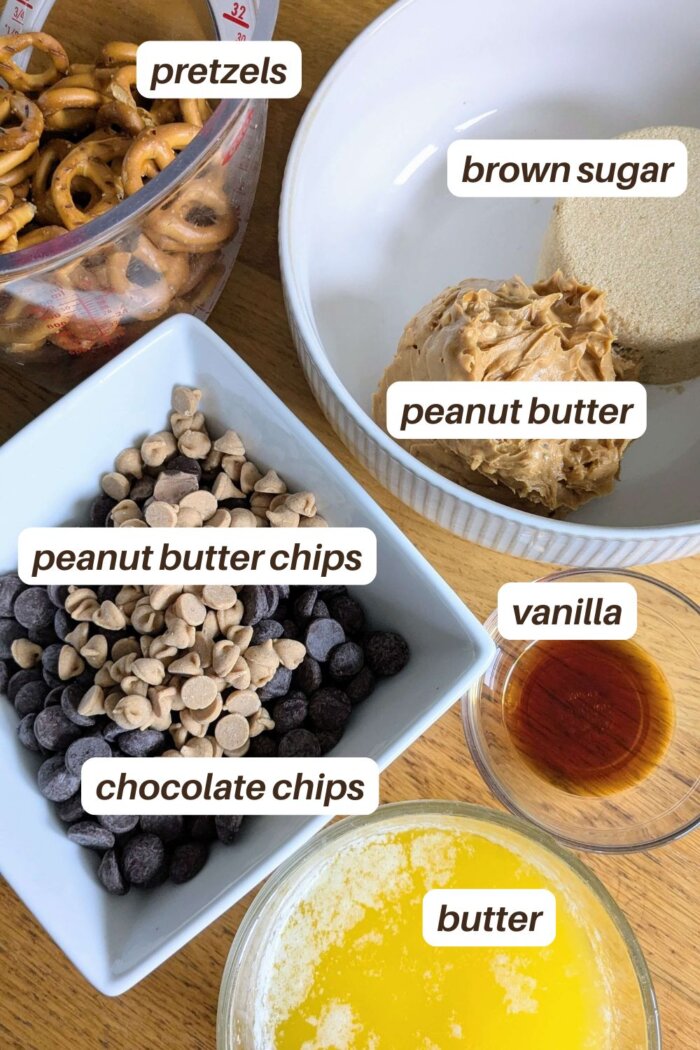 A food processor makes this a very quick recipe to make. But if you don’t have a food processor, you can crush the pretzels by placing them in a bag, sealing the bag, and then using your hands, a rolling pin, or a mallet to break them down. Then follow the above step, mixing everything by hand in a bowl.