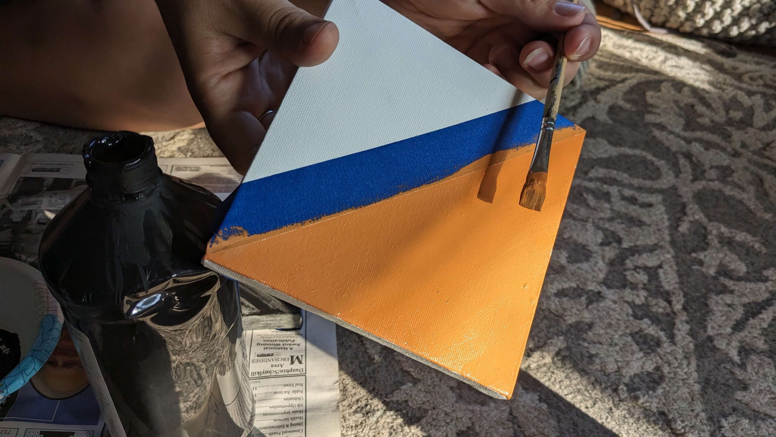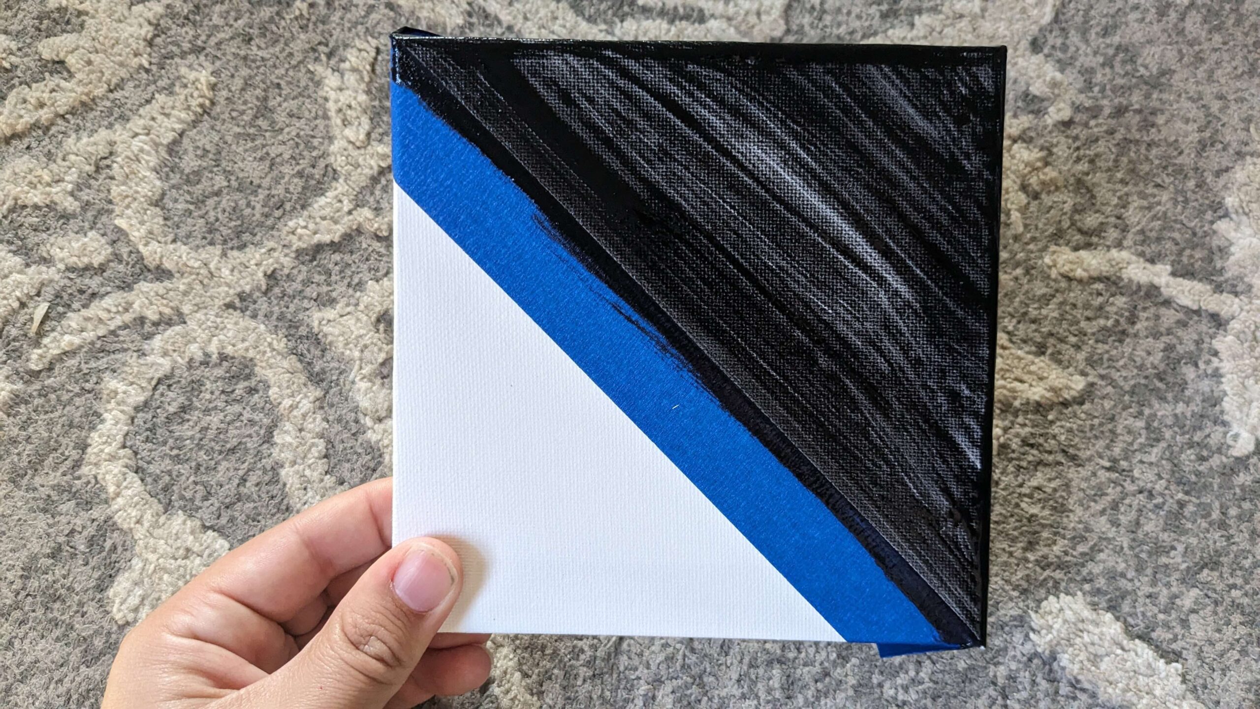 Using painter’s tape, I created a diagonal line and then painted several coats of paint on one side of it, waiting in between each coat for it to dry.