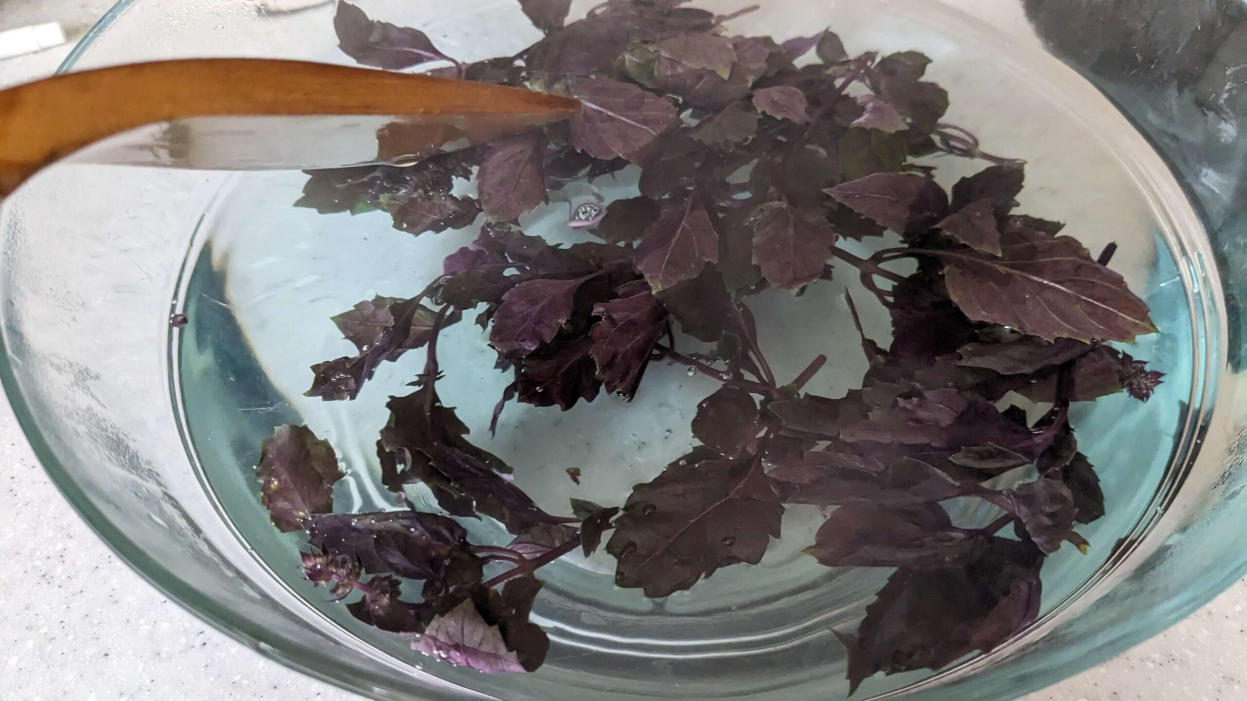 Purple basil itself has a strong scent and floral notes. People say it has a strong clove taste to it. I don’t necessarily get clove notes but I enjoy it nonetheless.