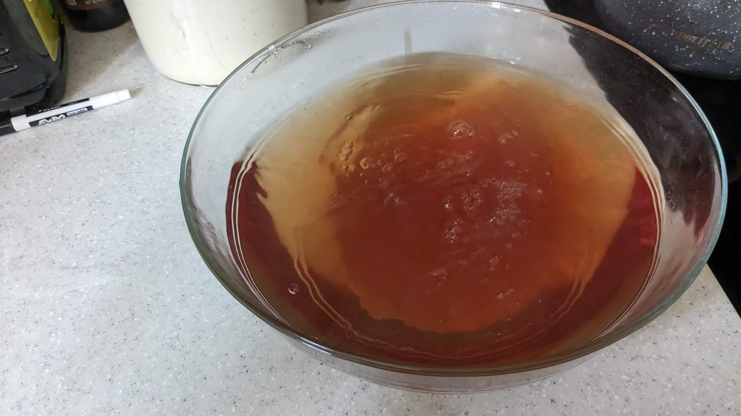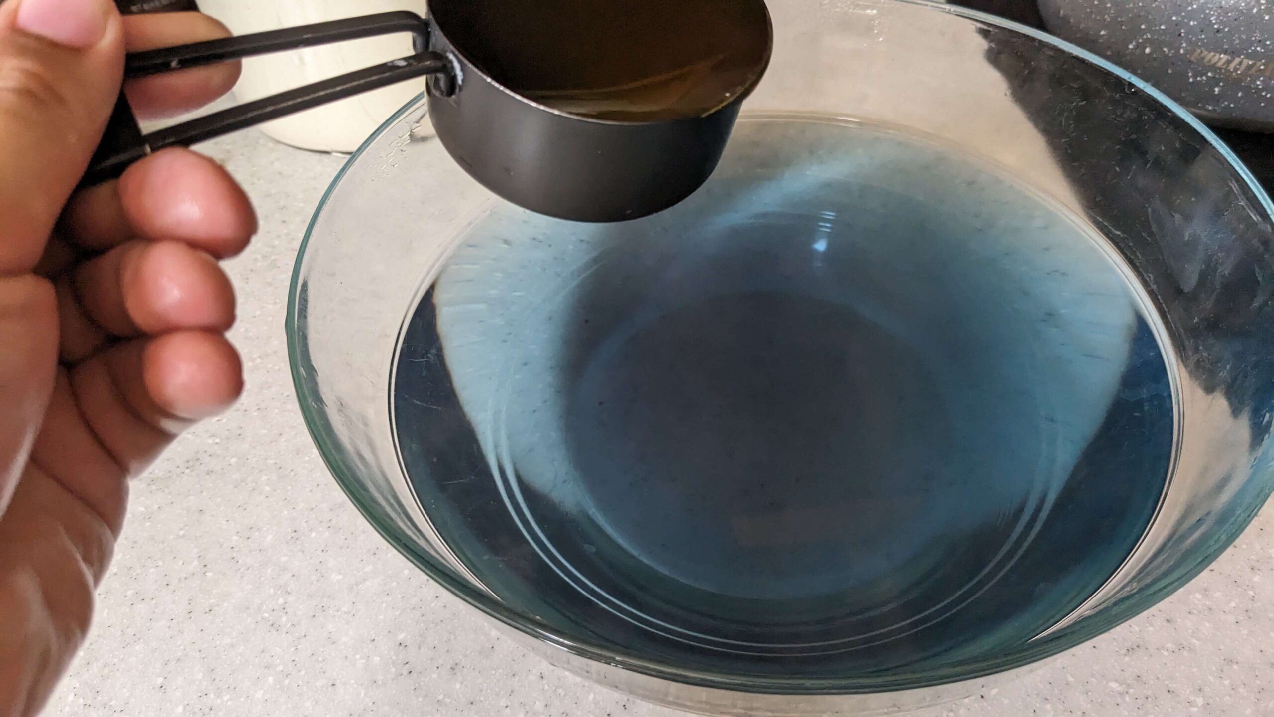 Bring 8 cups of water to a boil in a stock pot or plan to pour it into a heat-proof bowl. I transferred my water to a clear glass bowl so that the process could be seen clearly but I often make it in the stock pot that I boil the water in.