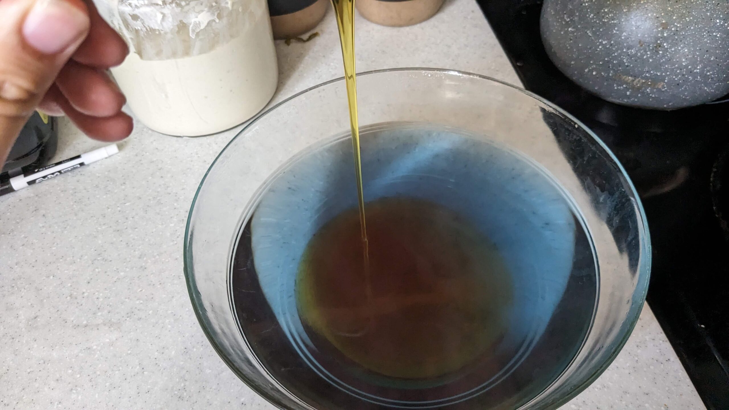 Something I really like using is a kitchen scale. It’s how I came up with the exact quantity of basil to use. It weighed 1 oz, but when I packed it into my measuring cup, it filled the cup measurement. I use my kitchen scale for a lot of my baking and cooking because I can just zero out the scale and weigh out my ingredients without using a lot of different measuring cups. It’s also super helpful to have with most sourdough products.