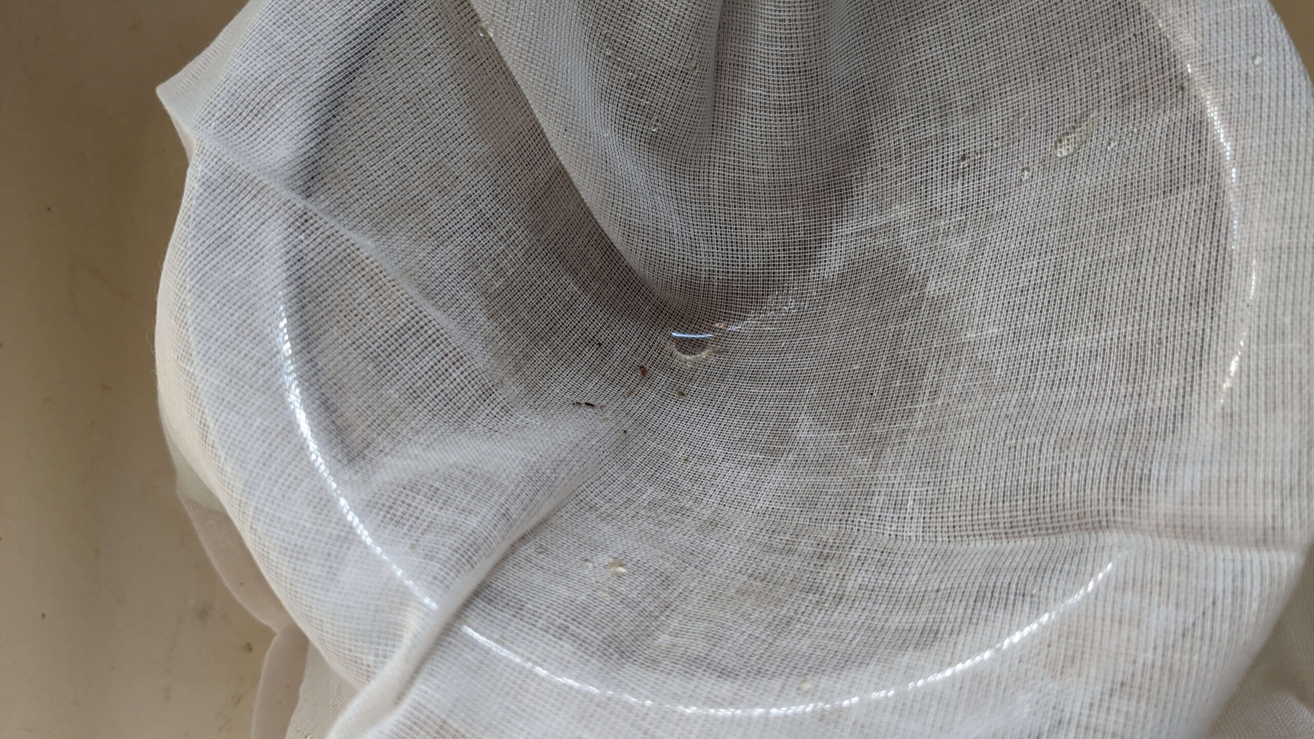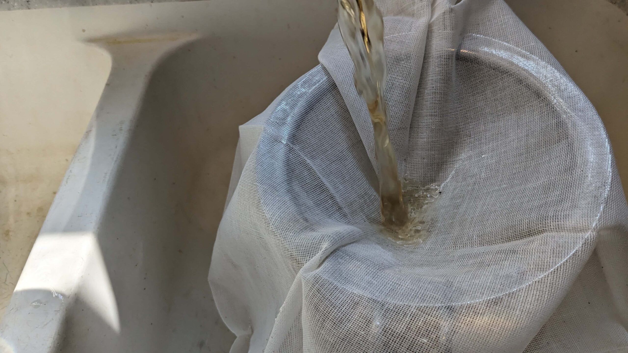 I like to use a fine mesh strainer and cheesecloth to make sure I’m not getting any dirt particles or little bugs that didn’t get washed off initially in my final product.