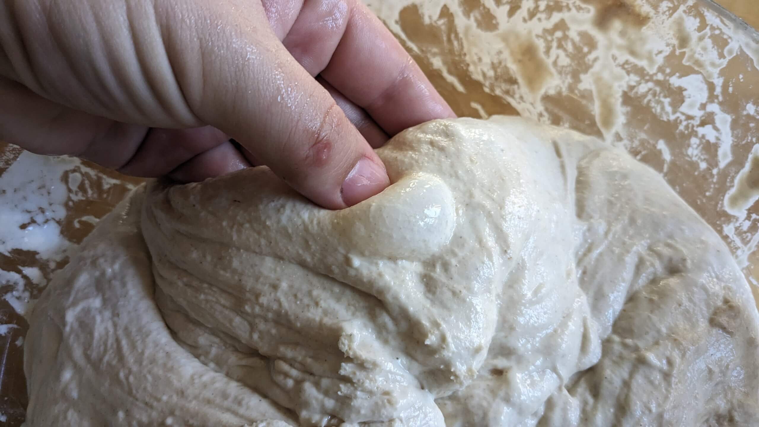 - Perform a series of stretch and folds. Cover with a damp towel and let rest for 20-30 minutes. Repeat this 4-5 times over the span of 2-3 hours.