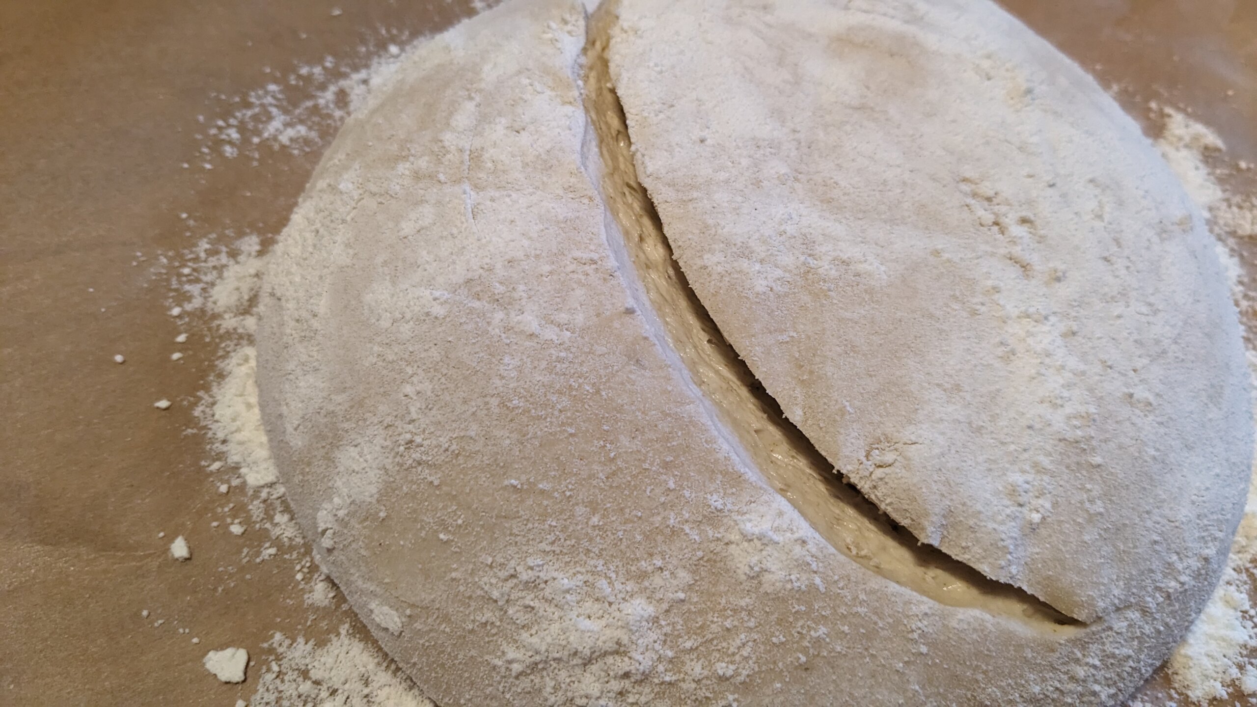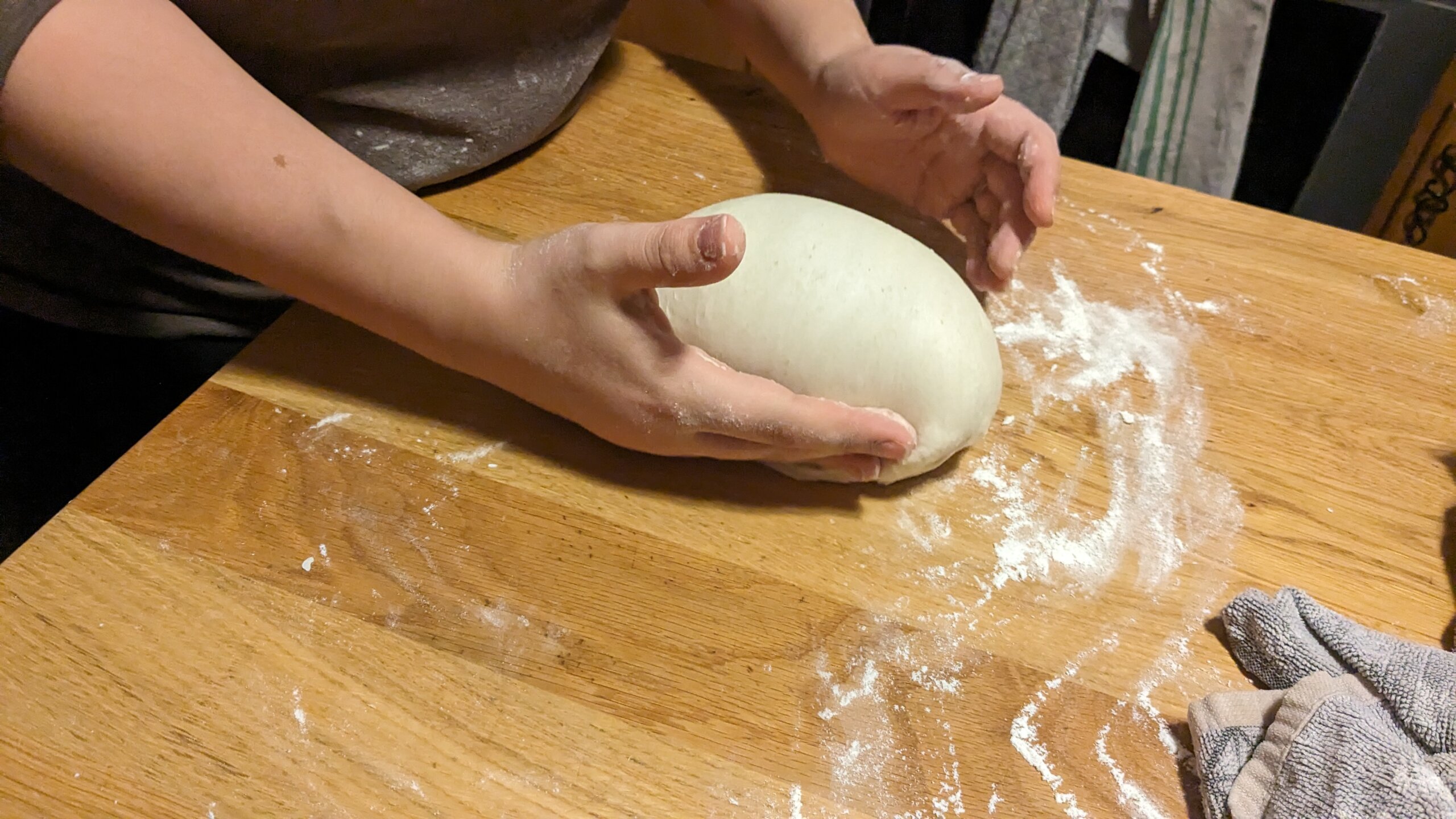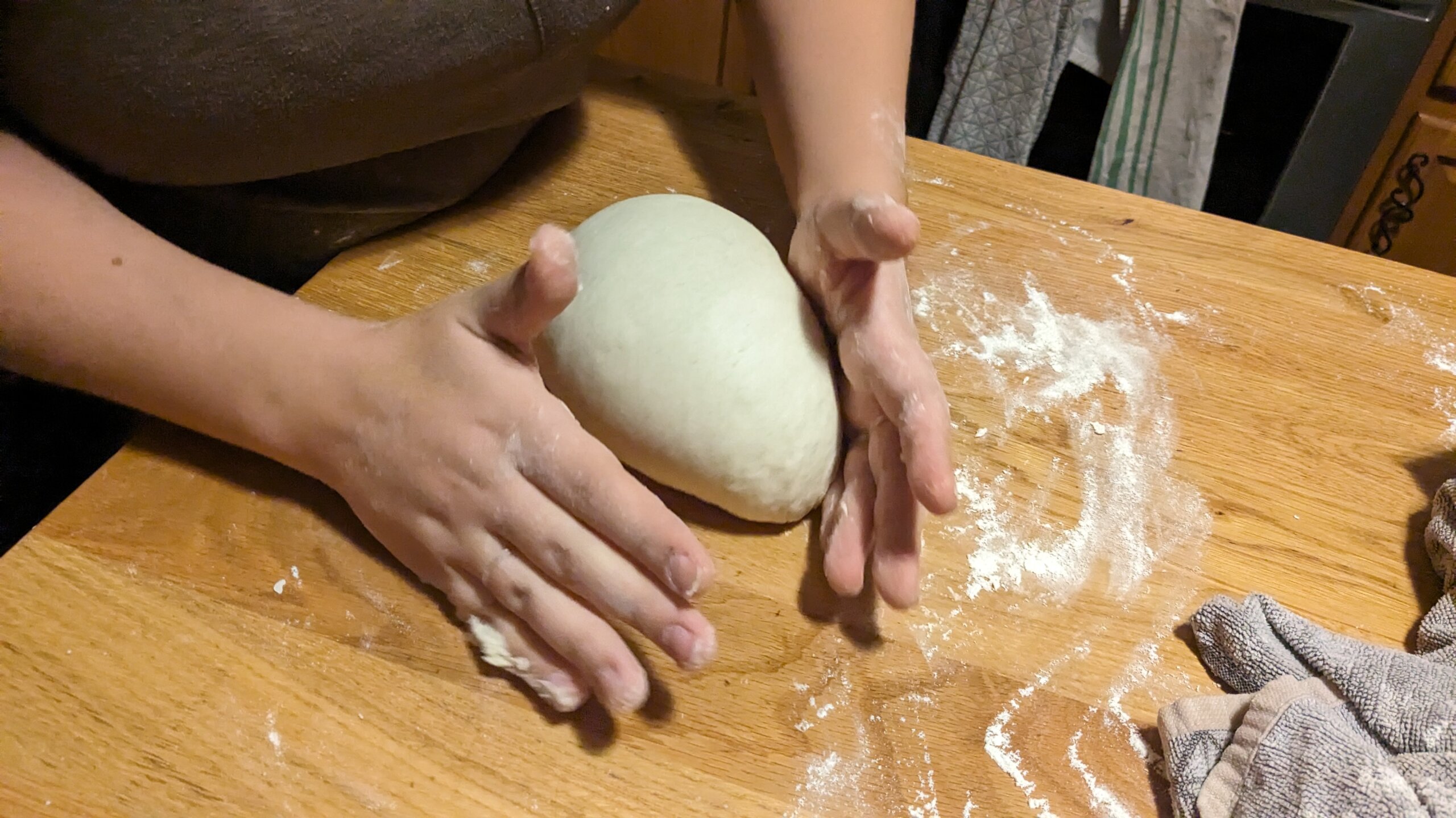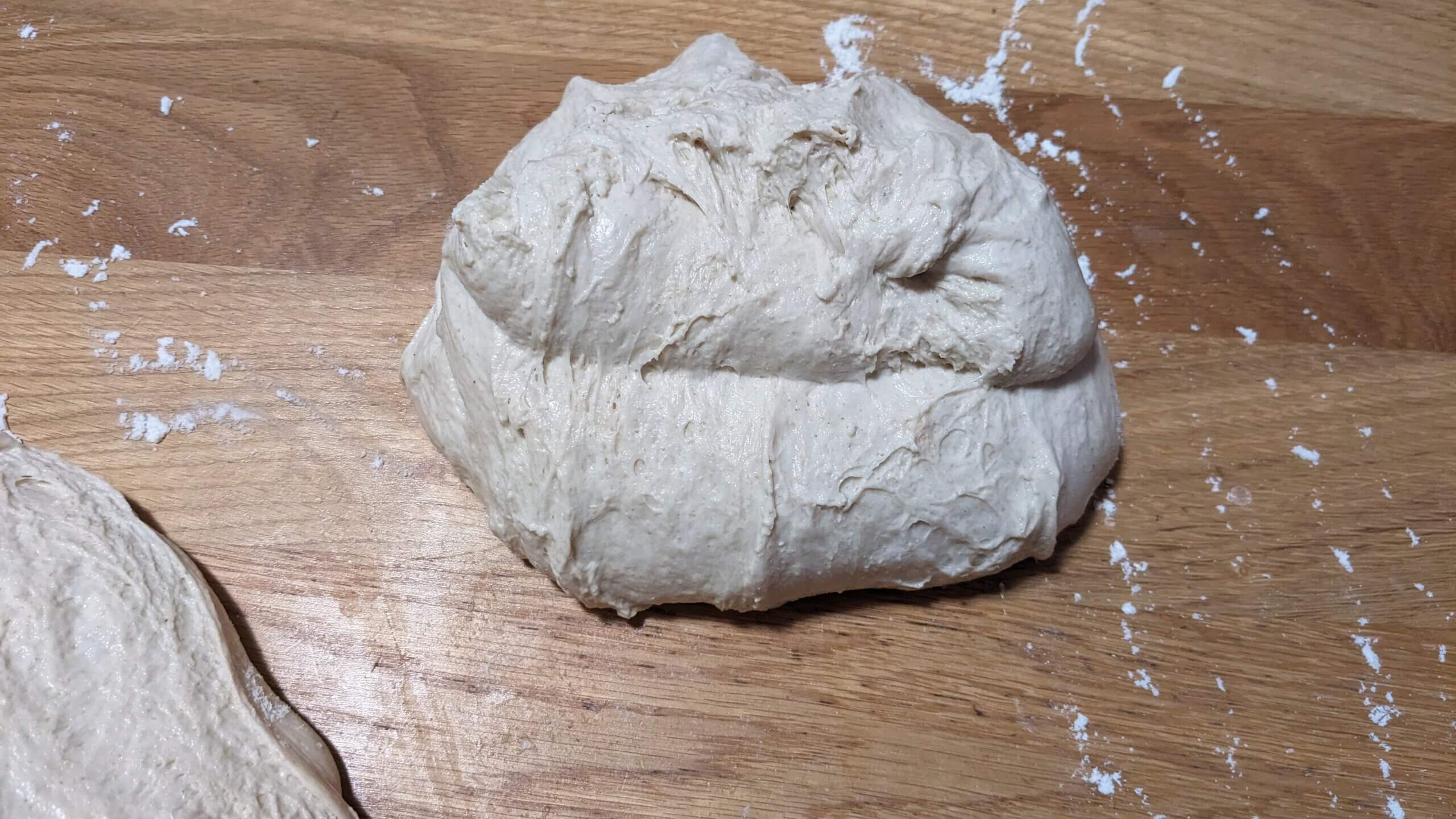 - Creat tension by forming each loaf, pushing and pulling the dough until it forms.