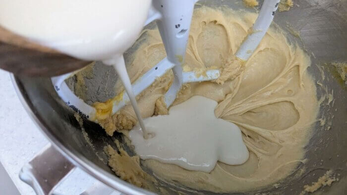 - Add the peanut butter and mix until just incorporated. Do not overmix.