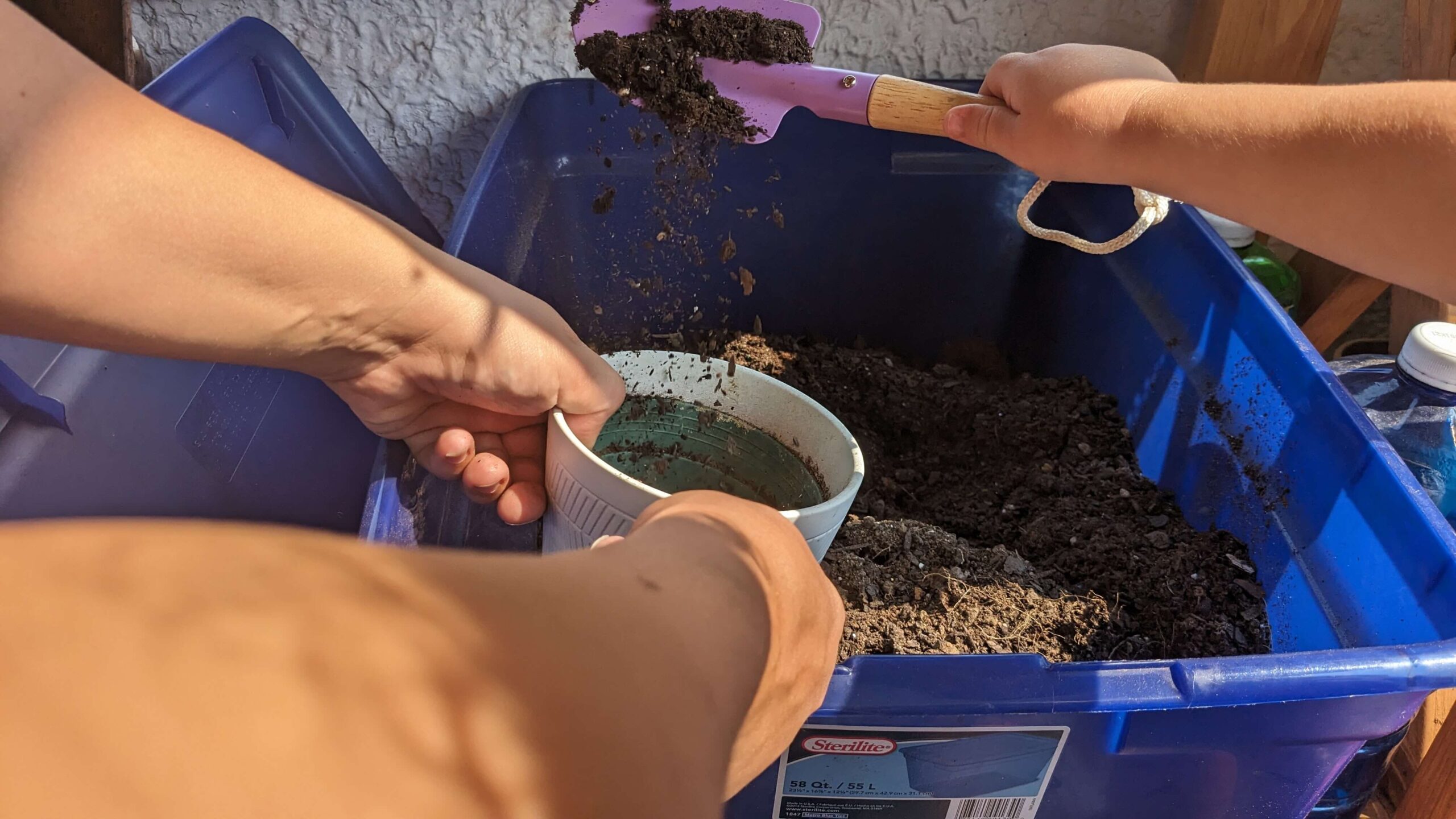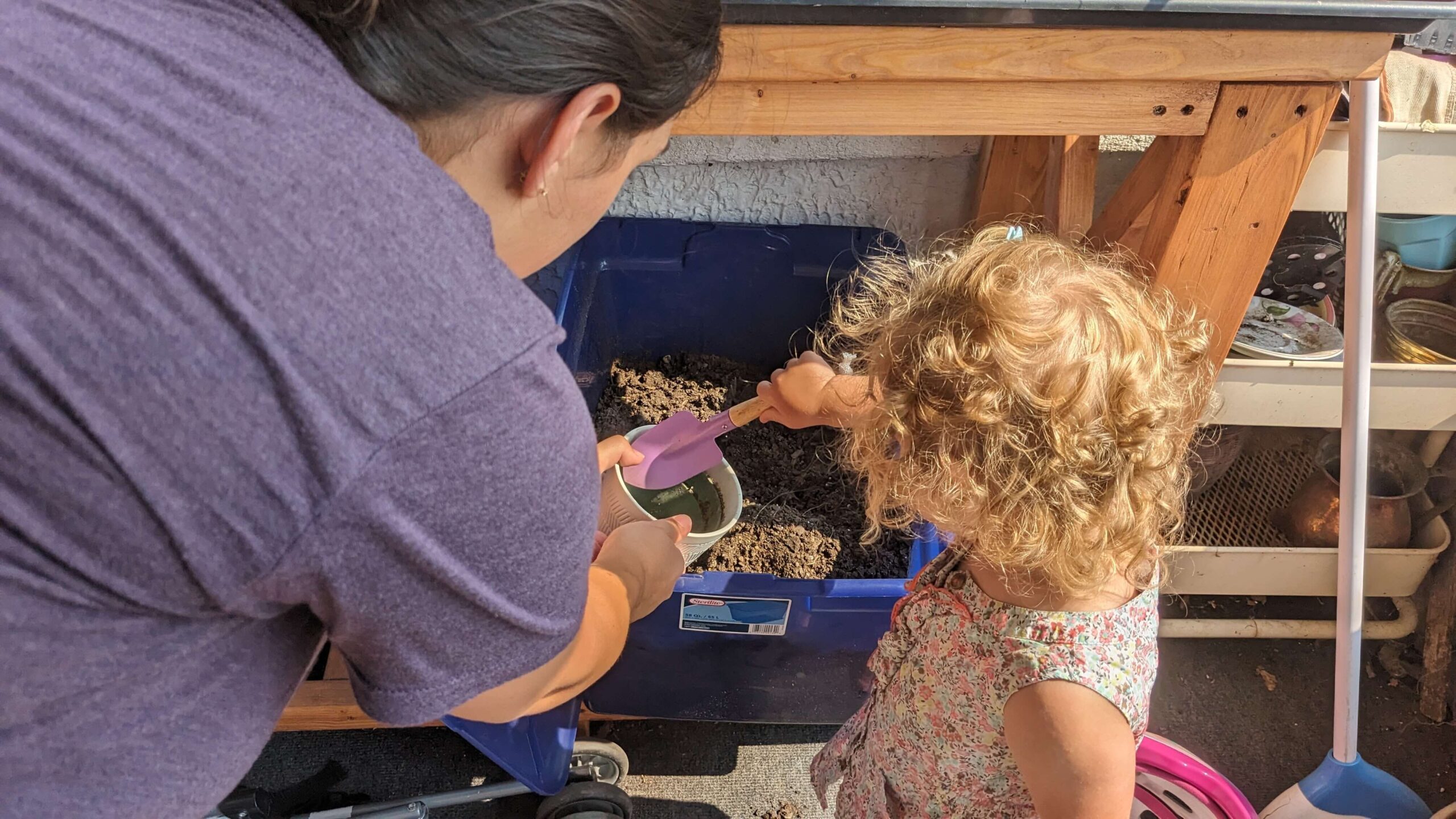 You can also keep this toddler activity relational by remembering patience and that dirt can be cleaned up easily. Some questions to promote conversation with your toddler include: